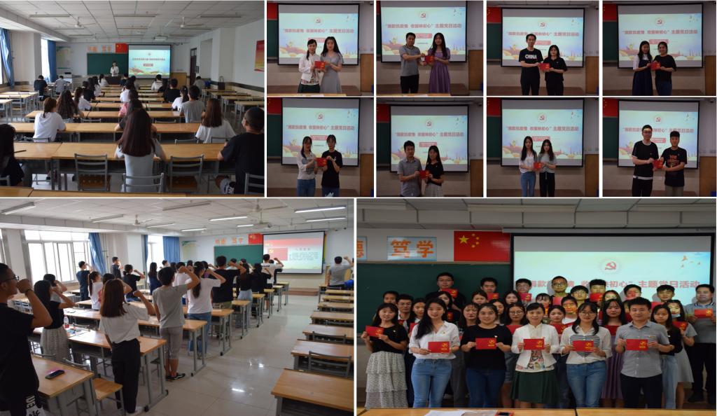 6月10日下午,太阳集团tcy8722员工第一、第二党支部在崇明楼102教室围绕“彰显党员先锋力量·高扬党旗筑牢堡垒”主线开展“捐款抗疫情,收据映初心”主题党日活动。活动分为捐款收据发放、入党宣誓、我与收据合张影三个环节。